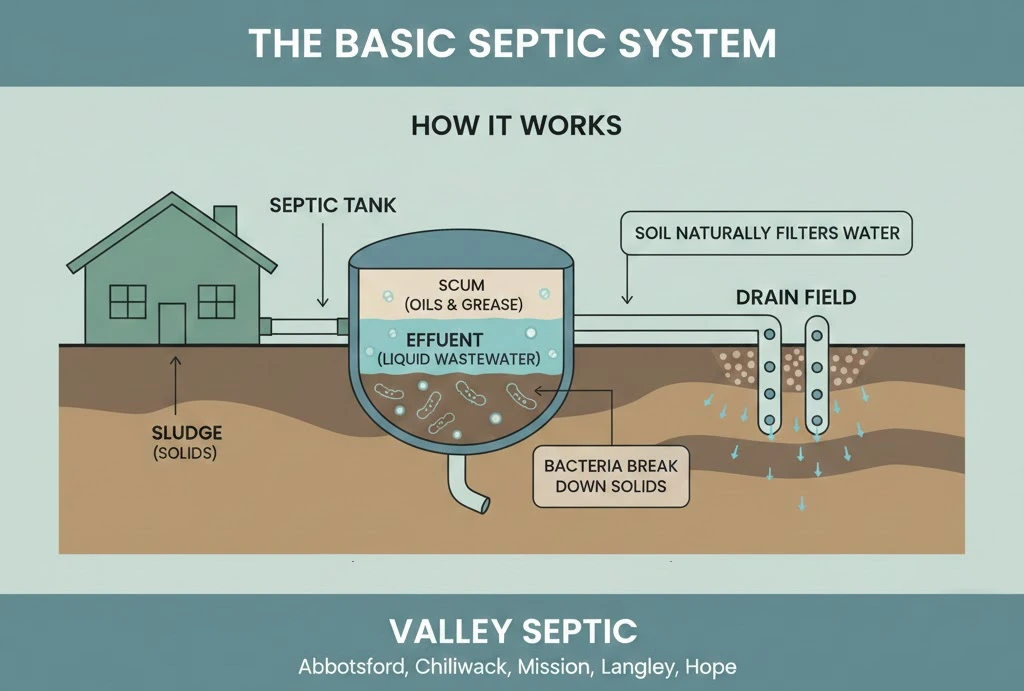 And if you’re in Abbotsford, Chilliwack, Mission, Langley, or Hope, Valley Septic handles everything from routine pumping to inspections. We live and work in the Fraser Valley, which means we understand the soil conditions, water tables, and specific challenges your septic system faces out here.